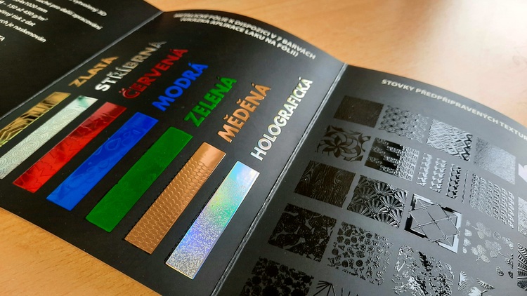 Ukázka UV profilu - prezentace metalických fólií a některých z 250 textur